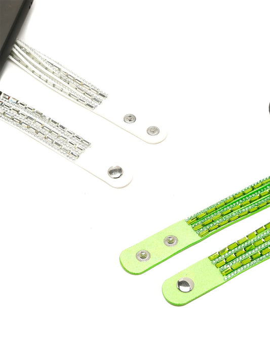 Combo Bracelets for Women 2 PCs Quirky Shiny Crystals White Green Color Wrap Wrist Band For Women and Girls