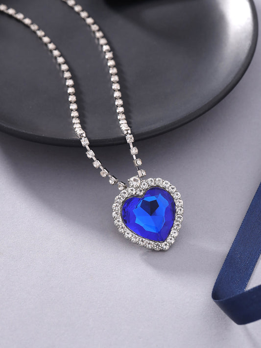 Pendant for Women and Girls Blue Crystal Pendant Silver Toned Crystal Heart Butterfly Pendent Chain for Girls | Birthday Gift for girls Anniversary Gift for Wife (Heart Chain Pendant)