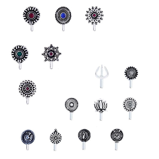 Oxidised Nose Pins for Women Silver Oxidized Nosepin Classic 15 Pcs Combo without Piercing Nose Pins for Women and Girls.