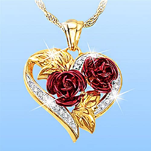Fashion Gold Plated Rose Flower Crystal Heart Design Pendant for Women and Girls, Medium