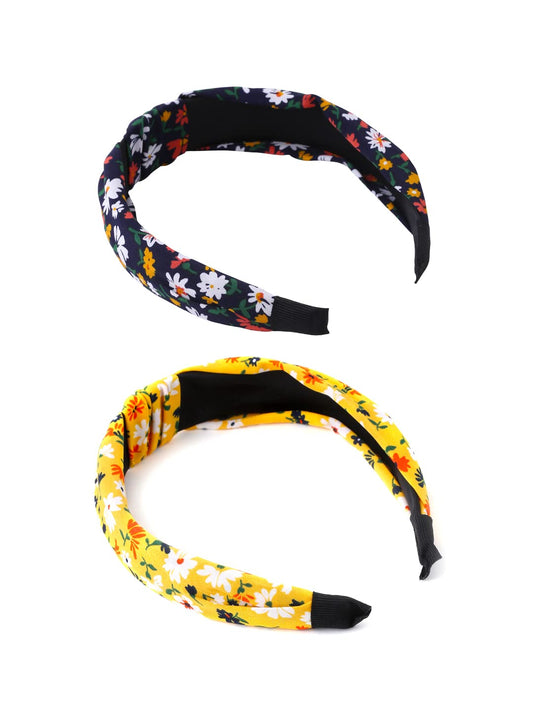 Hair Bands for Girls 2 Pcs Hairbands for Women Solid Fabric Knot Printed Headband Hairband Hair Accessories for Women and Girls.