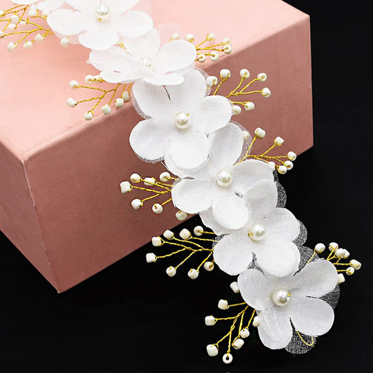 Hair Vines For Women Pearl Bead Flower Headwear Women's Hair Bridal Wedding Handmade Ribbon headband For Women and Girls