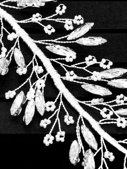 Bridal Hair Vine for Women and Girls Bridal Hair Accessories for Wedding Silver Headband Hair Accessories Wedding Jewellery for Women Floral Bridal Wedding Head band Hair Vine for Girls Headpiece