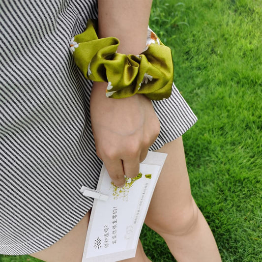 Hair Band for Girls Women Hair Accessories for Girls Hairband & Scrunchies Set For Women Floral Printed Green Satin Scrunchies Head Bands for Girls Hair Ties Head Band for Girls Gift For Women & Girls