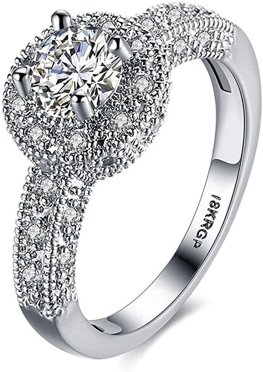 Rings for Women White Crystal Ring Platinum Plated Crystal Ring for Women and Girls(Size US 8)
