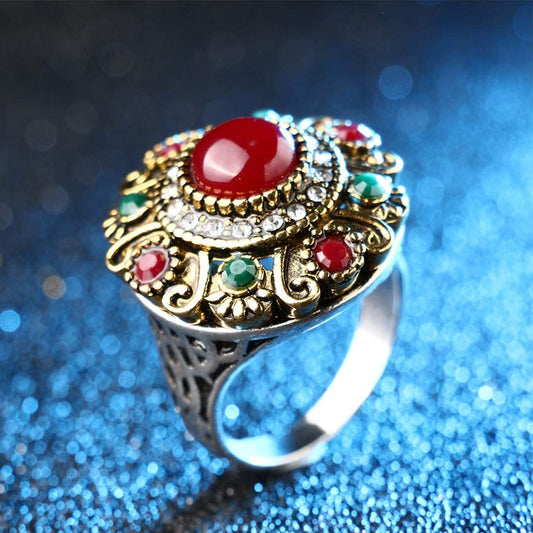 Rings for Women Classic Design Vintage Bohemian Multicolor Studded Stones Antique Rings for Women and Girl's (Size US 8)