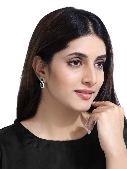 Crystal Drop Earrings for Women Elegant Silver Plated Green Crystal Drop Earrings for Women and Girls