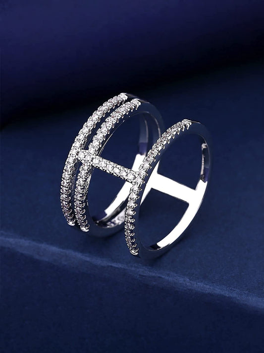 Exclusive Silver Plated Crystal studded with Cubic Zircon Ring for Women and Girls