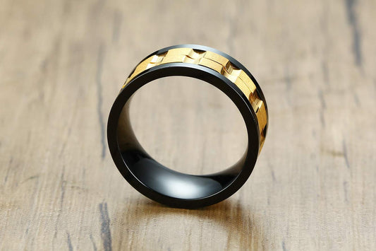 Ring for Men High Polished Stainless Steel Spinner Yellow and Black coolored Band Ring for Men and Boys