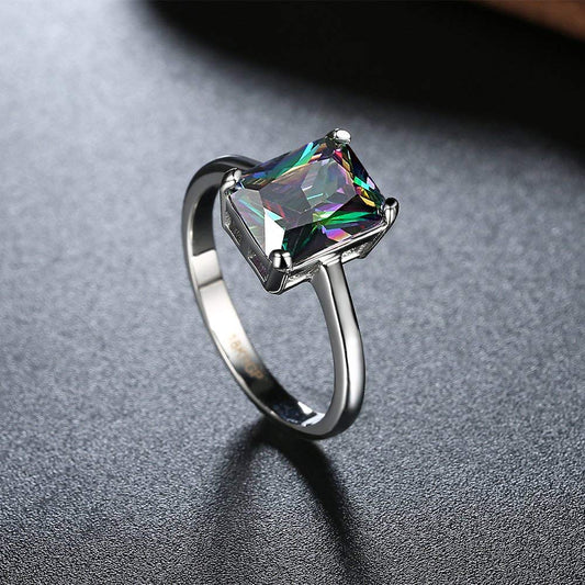 Rings for Women Elegant Sparkling Crystal Square Silver Plated Rings for Women and Girl's(Size US 8)