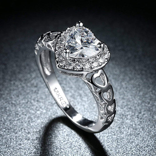 Rings for Women Exclusive White Colored Stone Crystal Swarovski Collection Heart Shaped Silver plated Alloy Studded Ring for Women and Girls (Size US 6)
