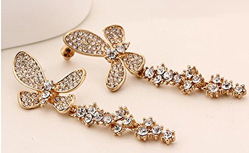Earrings for Women and Girls | White Stone Crystal Dangler | Silver Tone Earring | Butterfly Shaped Long Danglers Earrings Combo | Birthday Gift for girls & women Anniversary Gift for Wife