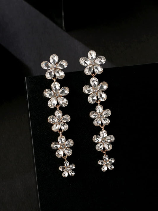 Earrings for Women Fashion Dangler Elegant Sparkling Crystal Floral Shaped Long Danglers Earrings for Women and Girls