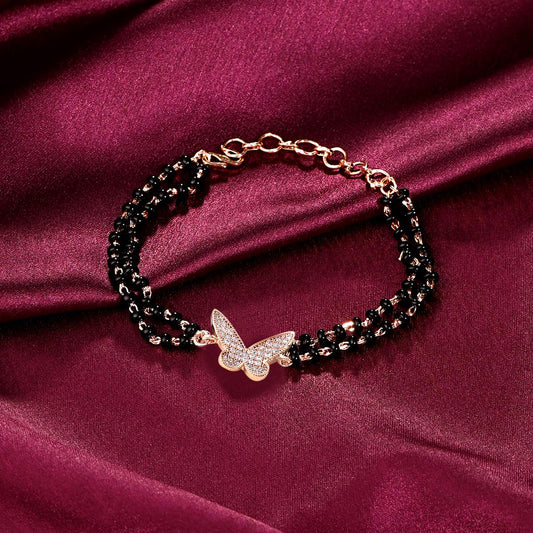 Mangalsutra Bracelet for Women Black Beads Butterfly Charm Rose Gold Plated Hand Mangalsutra Bracelets for Women | Marriage Anniversay Birthday Gift For Wife and Women