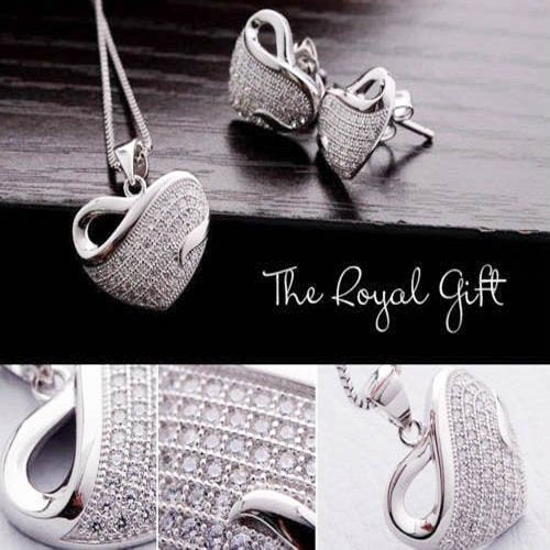 Crystals Sparkling Heart by Copper and Cubic Zirconia Jewellery Sets for Women (Silver)(MXFJPS-PA1426-SL)