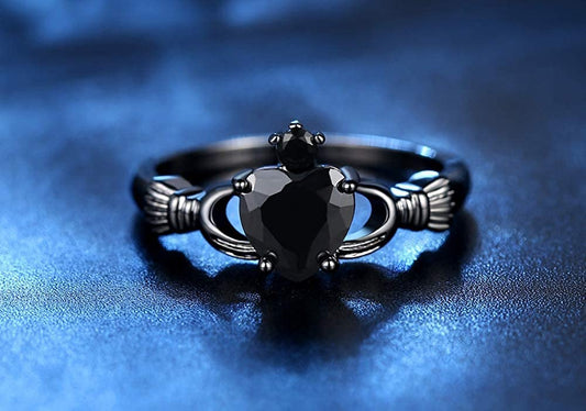 Rings for Women Elegant Black Gun Plating Crystal Black Stoned Cut Heart Ring for Women & Girls (Size US 8)