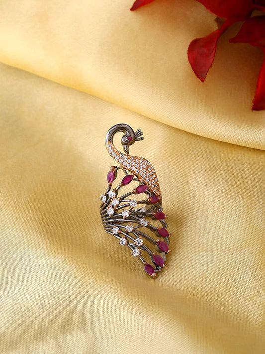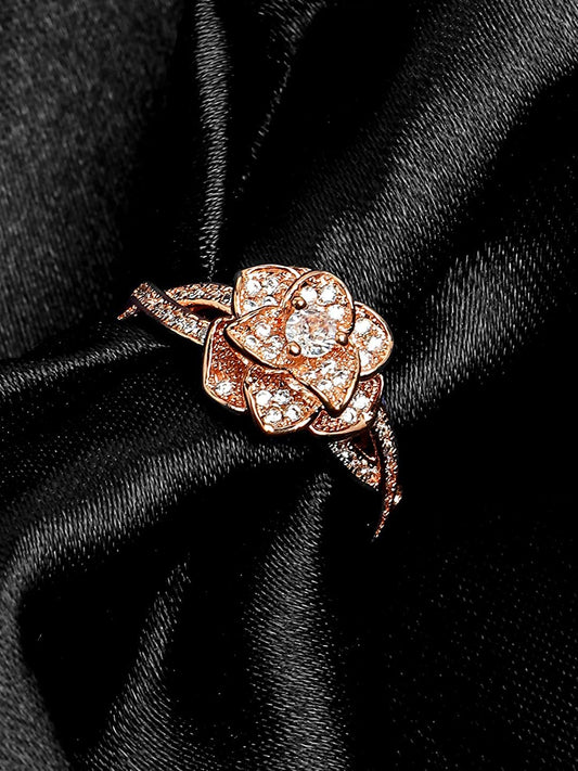 Ring for Women Rose Gold Toned Crystal Studded Floral Designed Ring for Women and Girls (Size US 6)