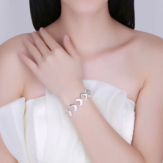 Silver Squares Silver Plated Stylish Charm Bracelet Women and Girls
