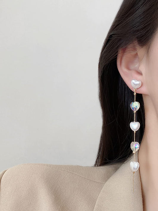 Earrings For Women Gold Tone Hearts Pearl and Stone Attached Long Chain Drop Dangler Earrings For Women and Girls