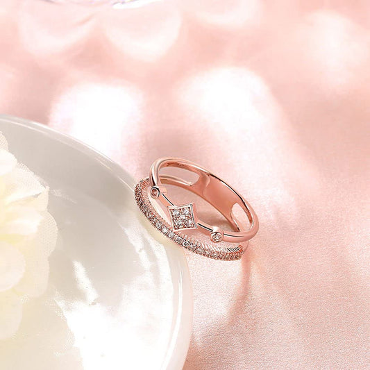 Rings for Women Rose gold plated White Crystal Stoned Stainless Steel metal Band Designed Ring for women and girls(Size 6)