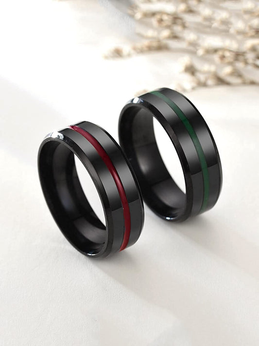 Rings for Men Combo of 2 Pcs Stainless Steel Rings Black Toned Grooved Center Band Rings for Men and Boys