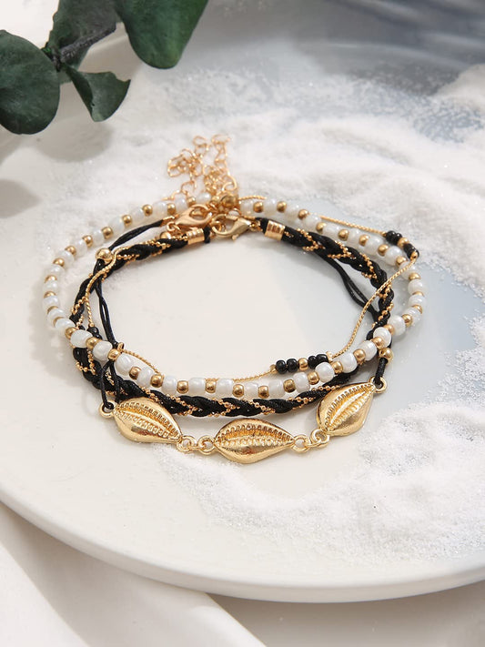 Anklets For Women Boho Layered Anklet Gold Toned Pearl Beaded Ankle Chain Foot Jewellery For Women and Girls