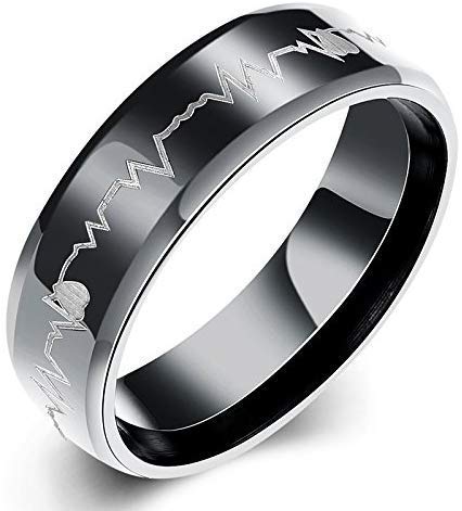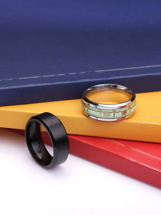 Rings for Men 2 pcs of Combo Stainless Steel Heartbeat and Smooth Finished band Designed Rings for Men and Boys