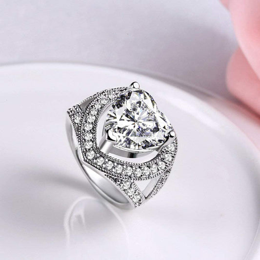 Ring for Women Cocktail Style Platinum Plated Emerald Crystal Heart Ring for Women and Girls