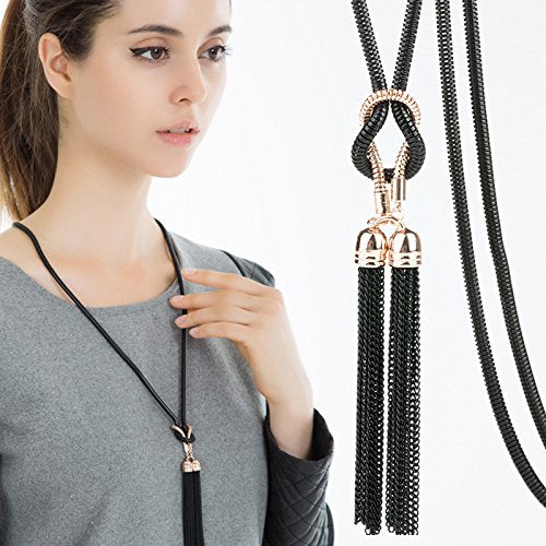 Western Style Front Knot Statement Long Chain Pendant Necklace for Girls and Women
