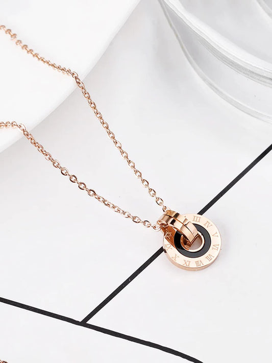 Chain Pendant for Women Western Style Rose Gold-Plated Stainless Steel Black Band Ring Pendant Necklace For Women and Girls.