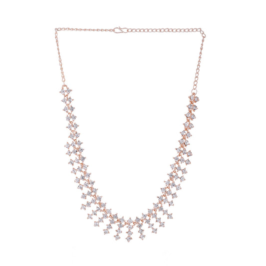 Jewellery Set for Women and Girls Rosegold Crystal Jewellery Set for Women | Rose Gold Plated Crystal Choker Necklace Set | Birthday Gift for Girls & Women Anniversary Gift for Wife