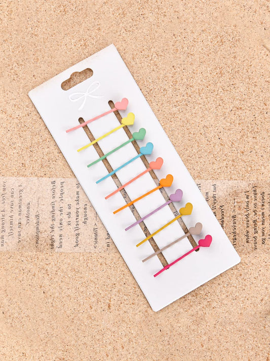 Melbees by Hair Pins for Girls Kids Hair Accessories for Girls Hair Pin 10 Pcs Heart Bobby Pins for Hair Multicolor Charm Hairpin Bobby Hair Pins for Girls Kids Teens Toddlers