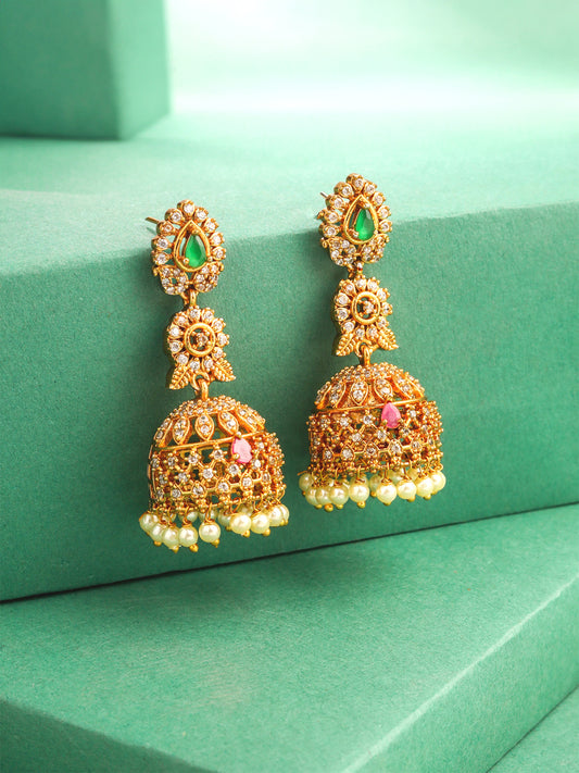 Traditional Gold Plated Jhumka Earrings for Women | Exquisite Lightweight Design | 5.2cm | Gold