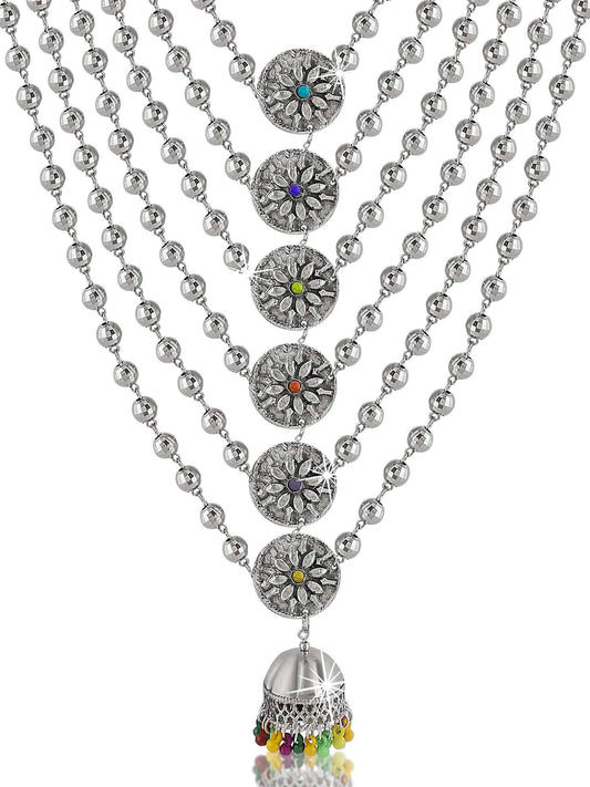 German Silver Oxidized Designer Multi Layer Beads Necklace Set with Stud Earrings Jewellery set for Women and Girls