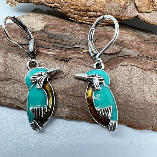 Earrings For Women Silver Toned Blue Colored Bird Hanging Huggie Hoop Drop Earrings For Women and Girls