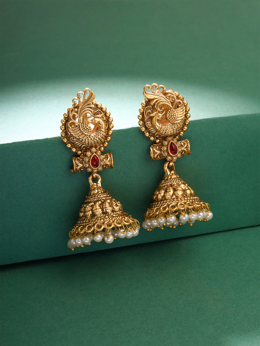 Jhumka Earrings: Traditional Gold Plated Design | 5cm x 2cm | Elegant Gold for Women