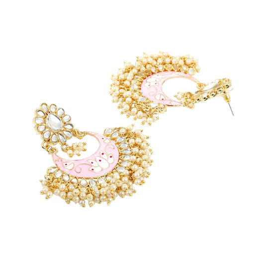 Chandbali Earrings for Women Ethnic Gold Plated Traditional Moti Beads Pink Meenakari Chand bali Earrings for Women and Girls