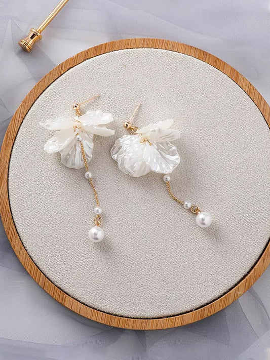 Earrings for Women and Girls Pearl Dangler | Gold Toned White Petals Pearl Drop Designed Long Danglers Earrings | Birthday Gift for girls and women Anniversary Gift for Wife