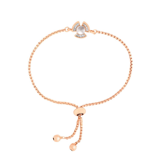 Bracelet for Women & Girls Fashion Rosegold Pearl Bracelets for Women | RoseGold Plated Floral Chain Bracelet | Birthday Gift For Girls & Women Anniversary Gift for Wife