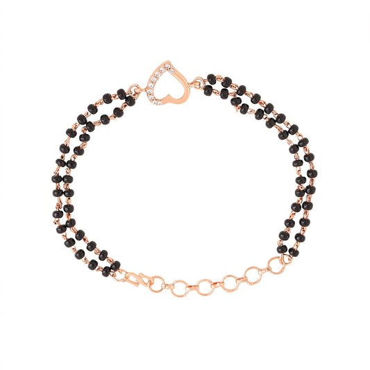 Mangalsutra Bracelet for Women Black Beads Heart Charm Rose Gold Plated Hand Mangalsutra Bracelets for Women | Marriage Anniversay Birthday Gift For Wife and Women