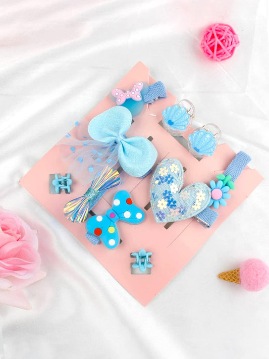 Melbees by Kids Hair Accessories for Girls Hair Accessories Combo Set Blue 10 Pcs Baby Girl's Hair Clips Set Cute Ponytail Holder Claw Clip Bow Clips For Girls Assortment Gift set for Kids Teens Toddlers