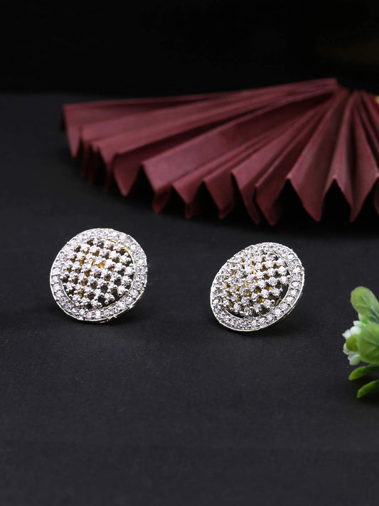 Classic White AD/American Diamond Studded 18k Gold Plated HandCrafted Circle Stud Earrings for Women & Girls