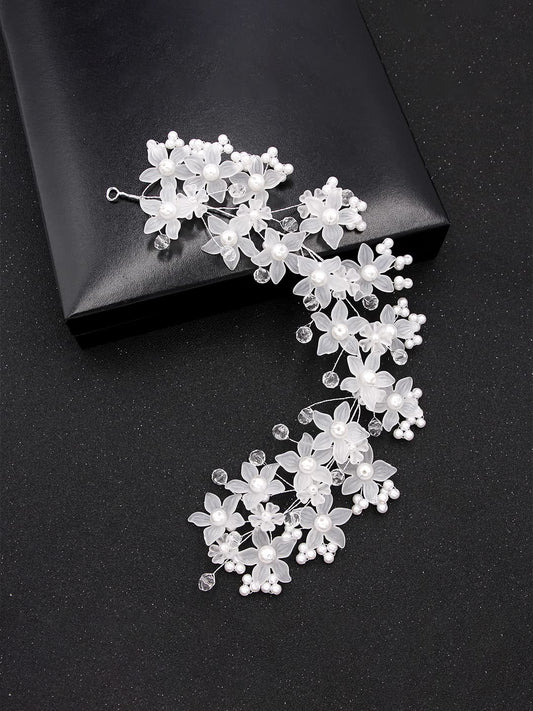 Tiara for Women and Girls Floral Hair Vine for Women White Bridal Hair Vine Tiara Headband Hair Accessories Wedding Jewellery for Girls and Women. (White 2)