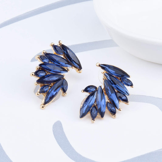 Elegant Gold Plated Crystal Clip-On Stud Earrings for Women and Girls (Blue)