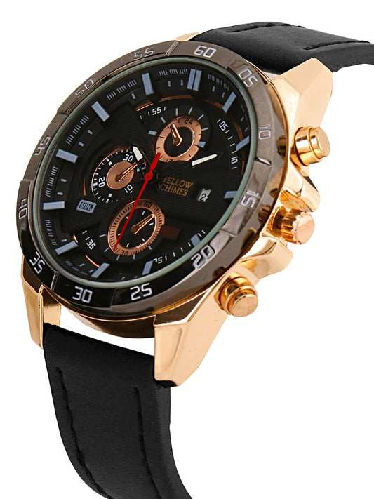 Stainless Steel Genuine Leather Black Analogue Watch with Black Leather Bracelet for Men & Boys in a Gift Box, Medium (YCMG-01WTCHBRT-BK)