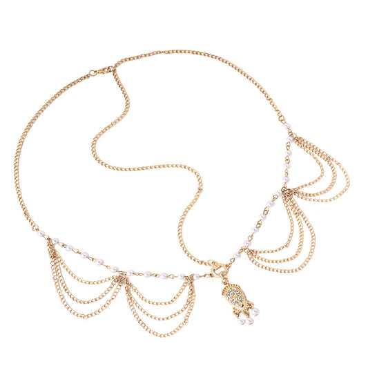 Head Chain For Women Layered Gold Toned Pearl Studded Charm Head Chain For Women and Girls