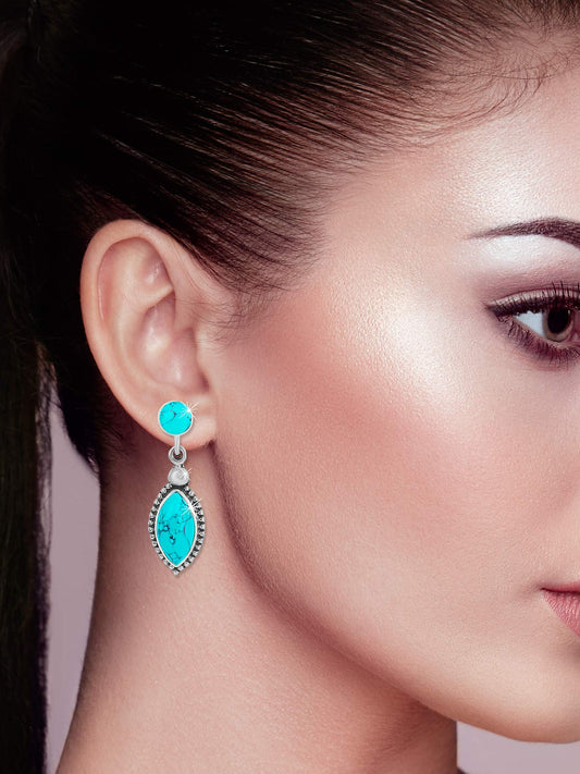 Gemstone Turquoise 925 Sterling Silver Hallmark and Certified Purity Drop Earrings for Women and Girls