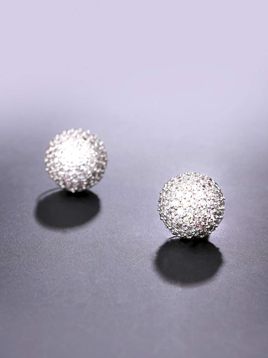 Classic White AD/American Diamond Studded 18k Gold Plated HandCrafted Circle Stud Earrings for Women & Girls