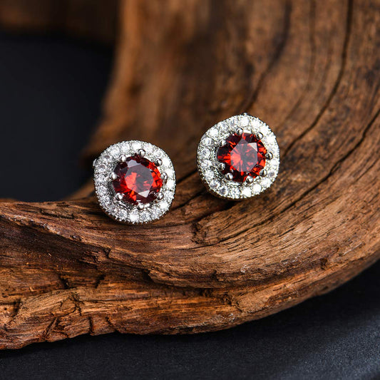 Elegant Latest Fashion Silver Plated Red Crystal designer Stud Earrings for Women and Girls (Red)