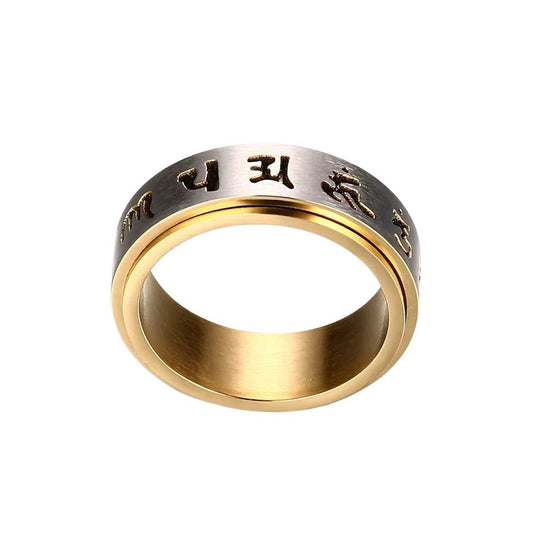 Religious Lucky Transfer Rotatable six Words Mantra Stainless Steel Spinner Pattern Rings for Men and Boy's